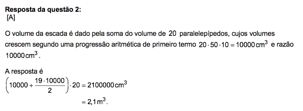 Se essa escada for prolongada para ter 20 degraus, mantendo o mesmo padrão, seu volume será igual a (em m3)