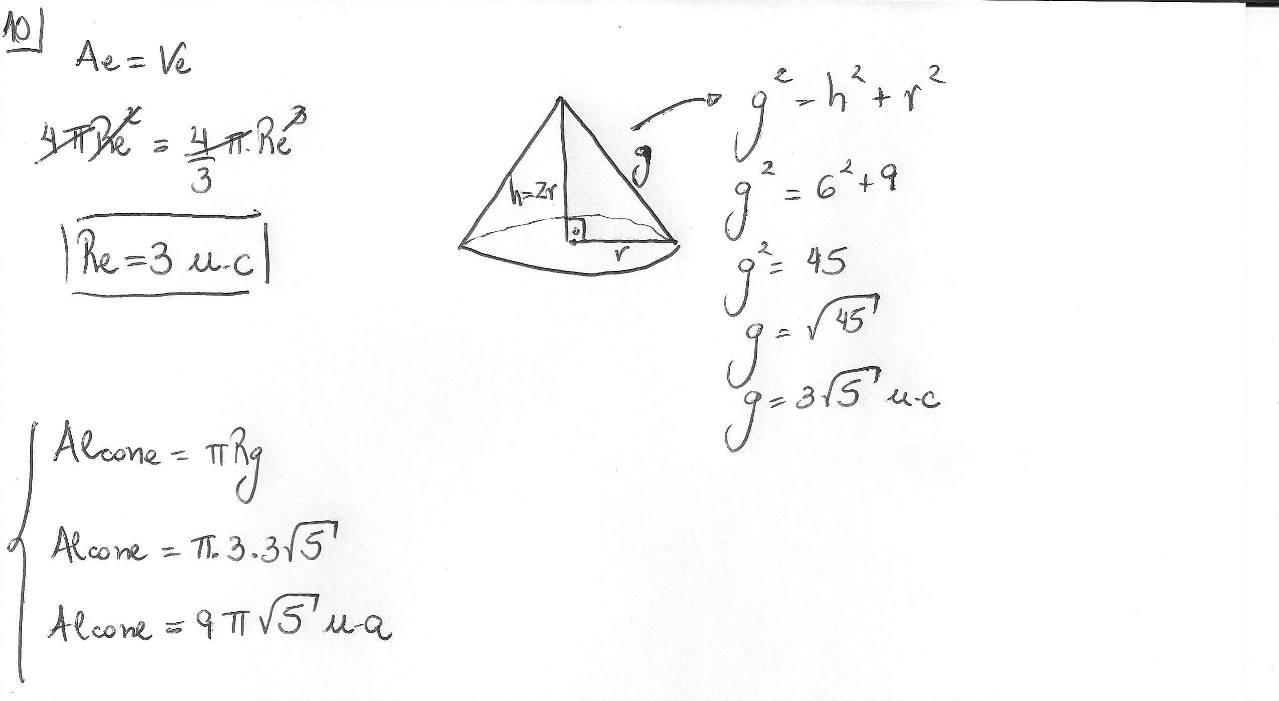 10ª questão: geometria espacial com esfera e cone