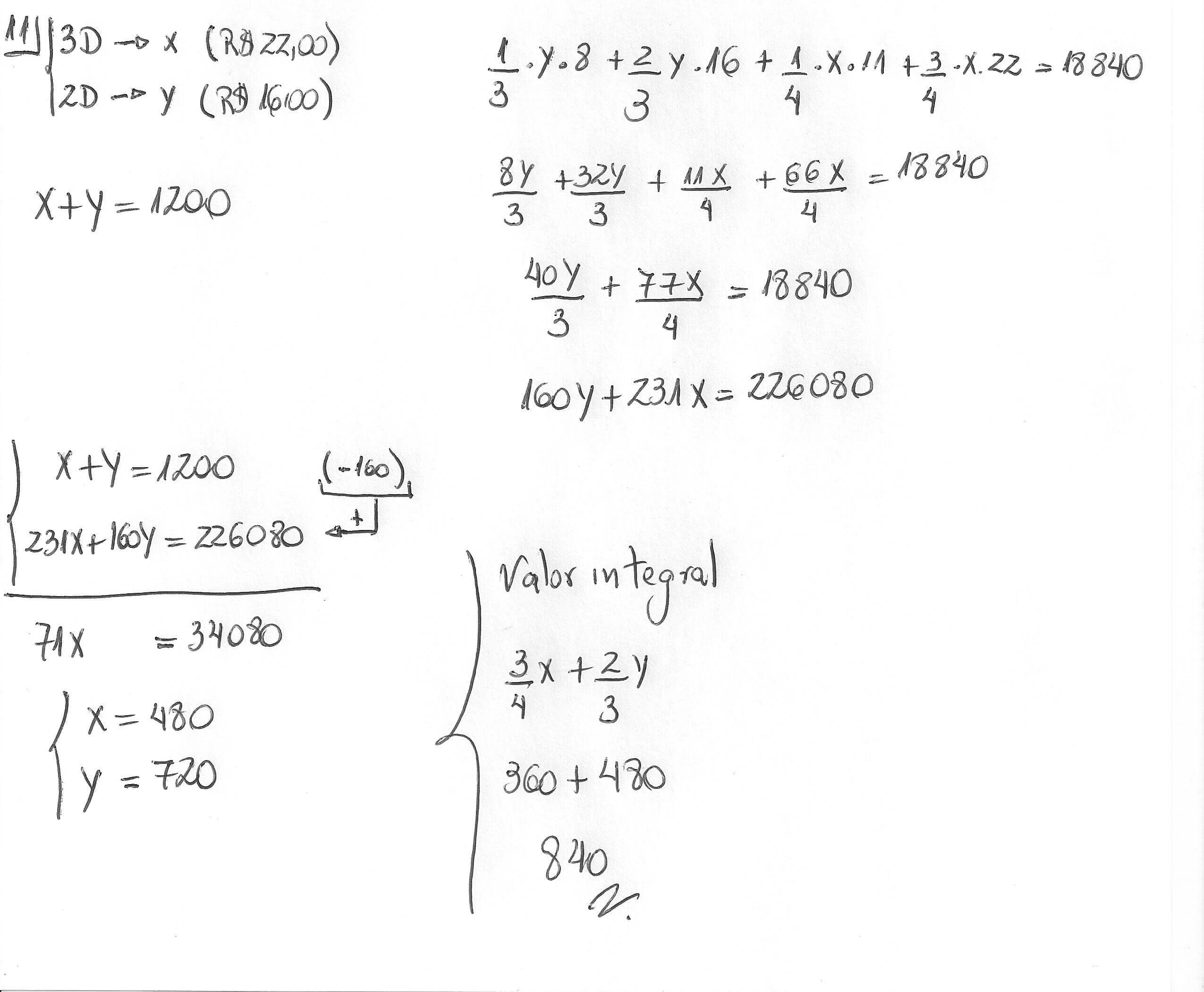 - Na questão 11, quando o senhor faz 231x + 160y = 226080, como o senhor chega no número 34080?