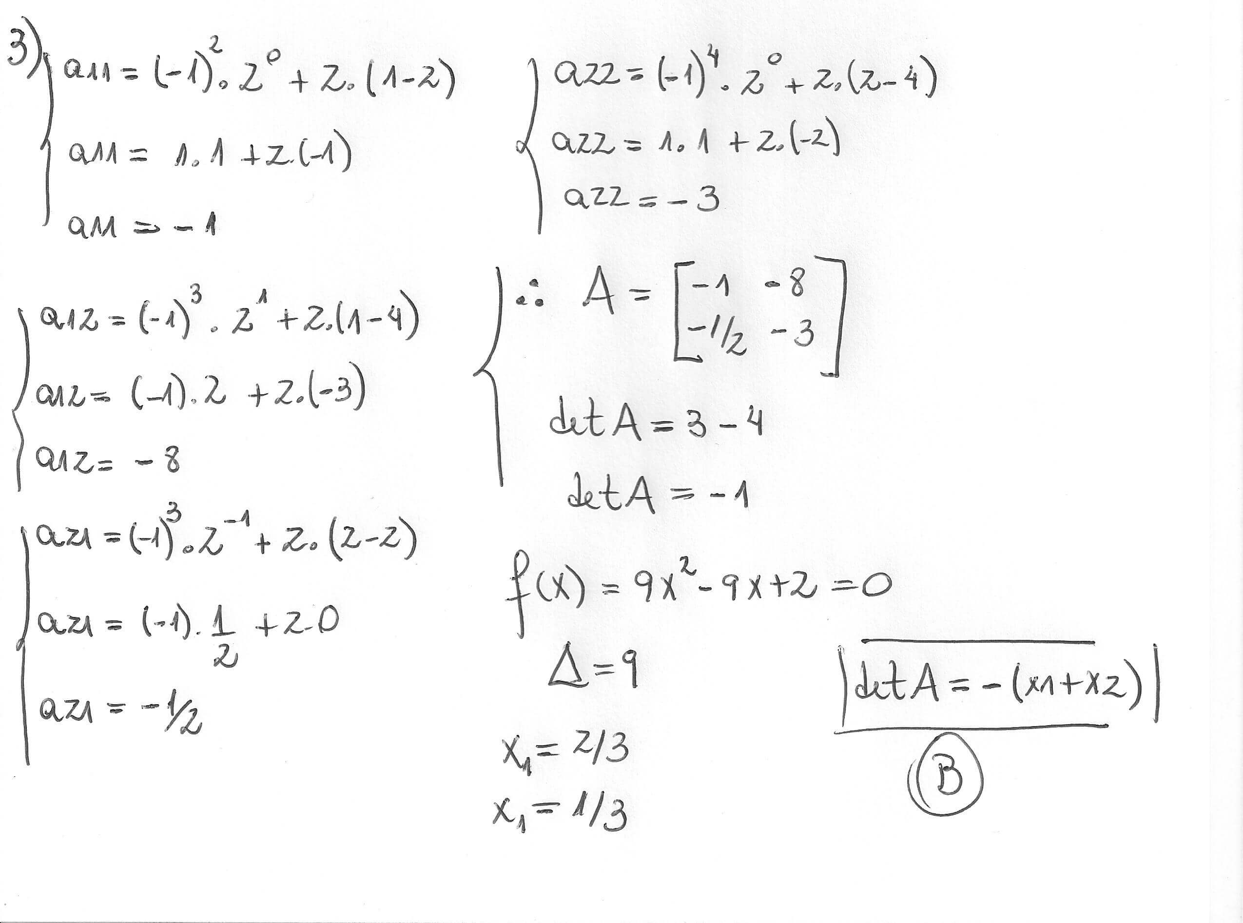 3ª questão: matrizes determinantes e função do 2° grau