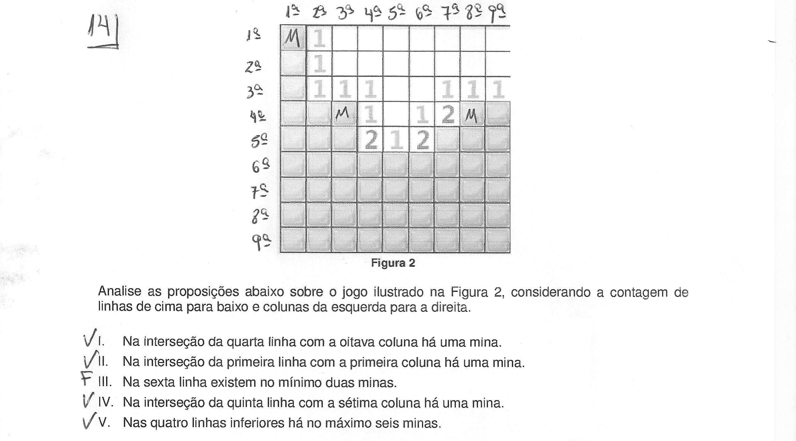 14ª questão: lógica usando o jogo Campo Minado